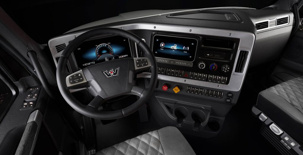 Making life easier for those who drive our trucks is always high on the priority list, so we’ve taken cab life a serious leap forward. It begins with our new digital dash display: bright, clear, customizable and intuitive. Then there’s the driver’s lounge in back. Equally as customizable, it’s easily spec’d out with optional features including a flat-screen TV, refrigerator, dinette, a full-size Murphy-style bed and more.